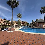 The spacious 95 m² Modern 2 Bedroom Apartment - Hacienda Del Sol Estepona is nearly a 10-minute ride from the Iglesia Mayor de la Encarnacion and features a terrace with a swimming pool. The 2-bedroom apartment lies 3.5 km from the Tower Park Benalmádena.